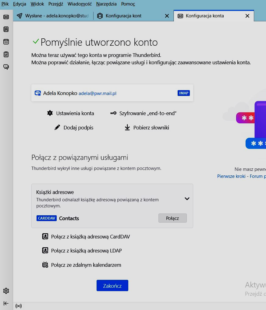 Podanie adresu mailowego wraz z domeną wyzwala automatyczne podstawienie potrzebnych danych dotyczących serwerów. Procedura znacznie ułatwia konfigurację i należy ją zaakceptować