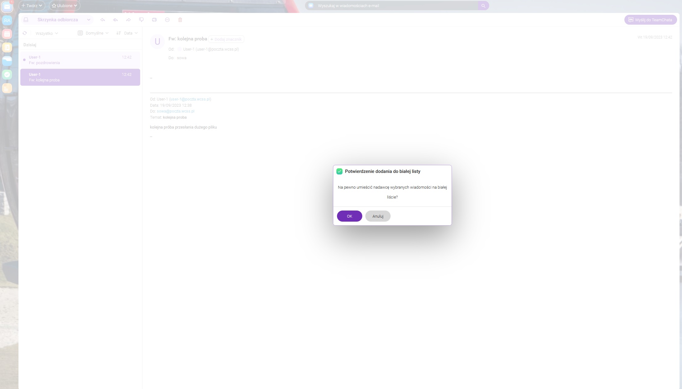 Niezależnie od tego, jaki panel zostanie wybrany, można dodać adres nadawcy do właściwej listy, wystawczy wybrać jedną z list, a system zażąda potwierdzenia.