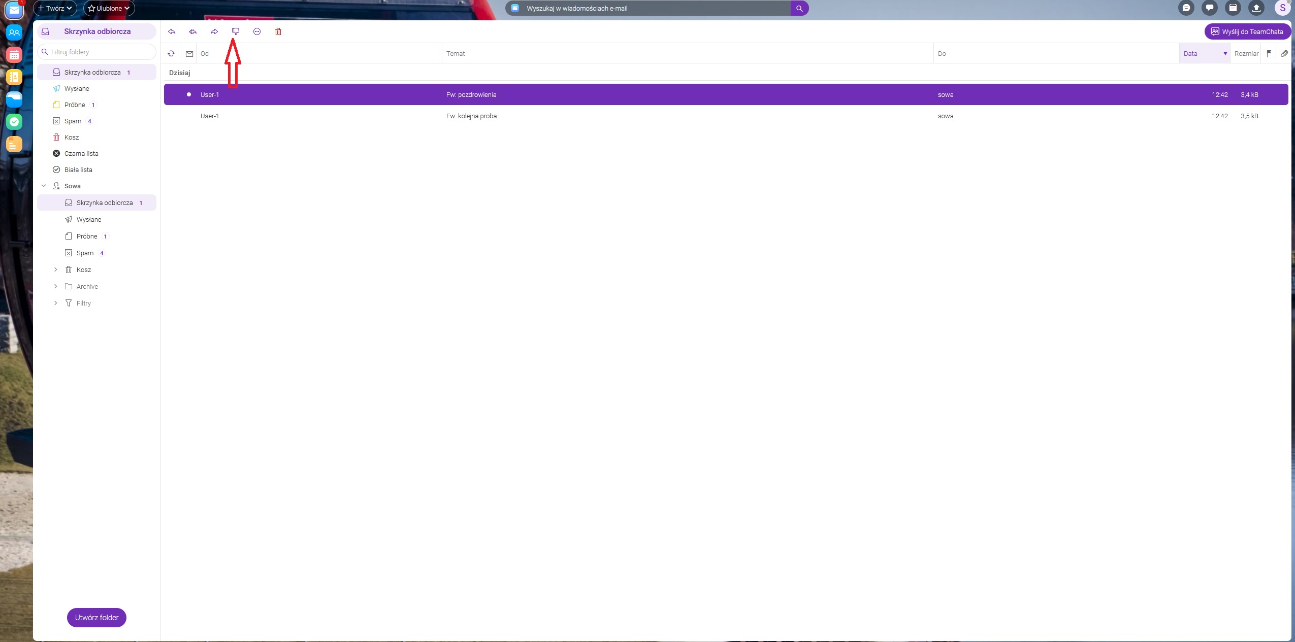 Wybierając właściwy mail na panelu i ikonę nad listą wiadomości, możemy skorzystac z szybkiego przesyłania adresów na czarną liste.