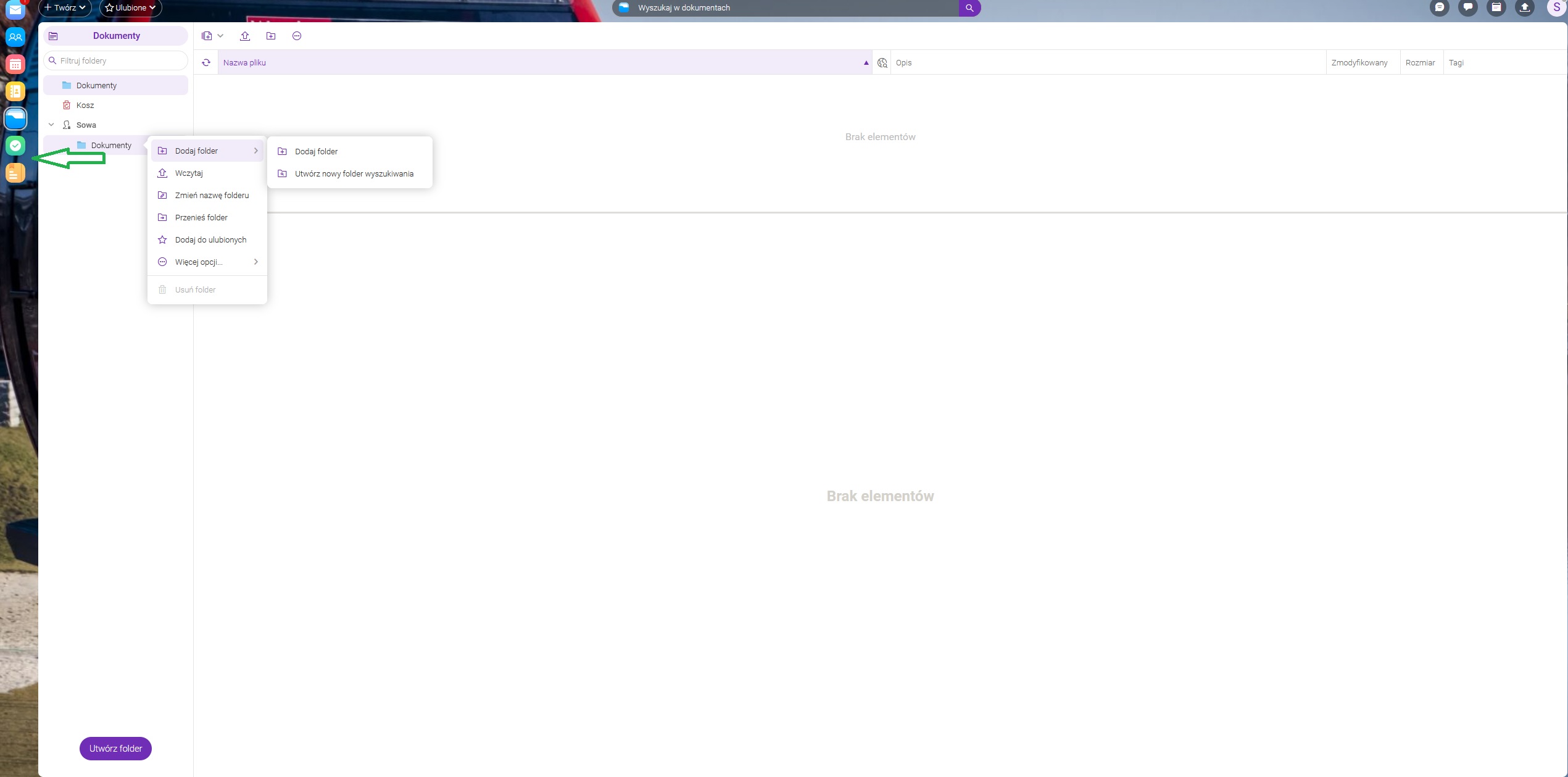 Wszystkie pliki znajdujące się w folderze Dokumenty są widoczne na bocznym panelu