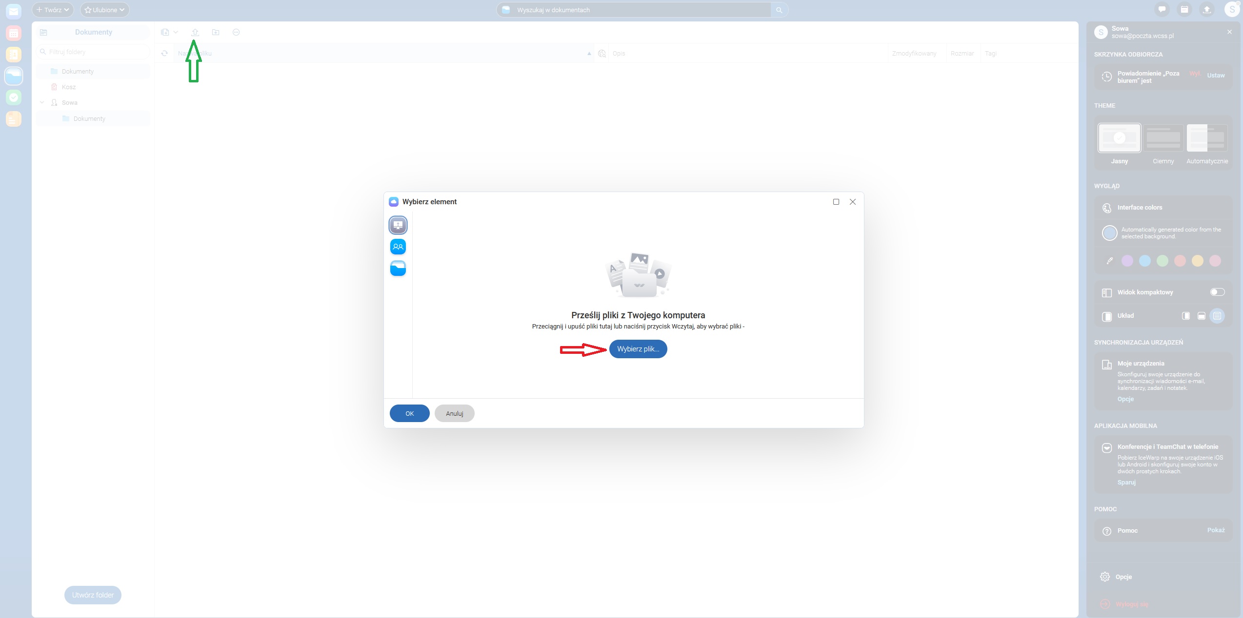 Wybrany z komputera plik zostaje zapisany na koncie użytkownika w katalogu Dokumenty lub w podkatalogu, z którego zainicjowano zaczytanie.