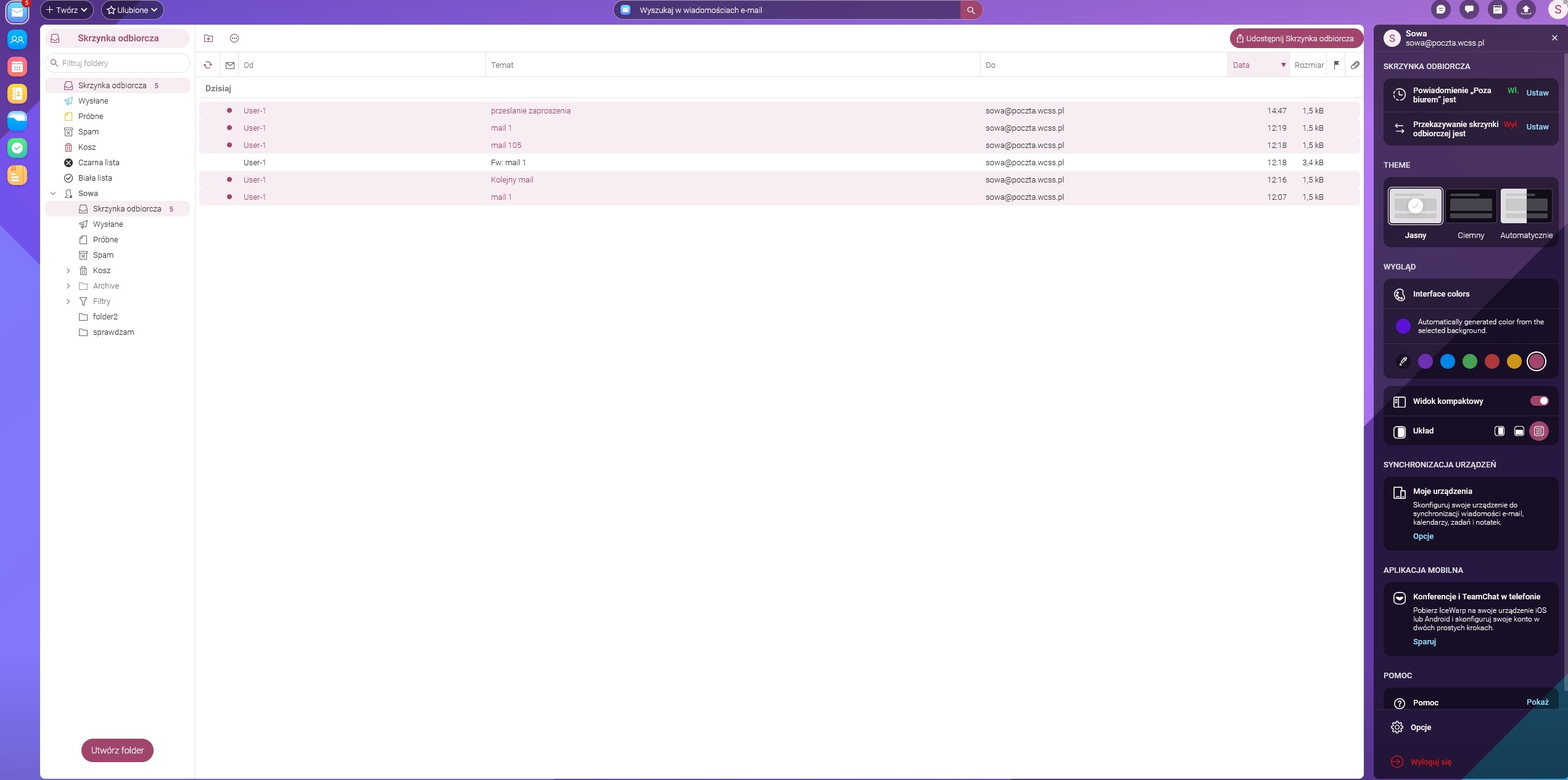 Po poprawnym zalogowaniu wyświetlona zostaje struktura konta pocztowego zgodnie z poniższym widokiem.