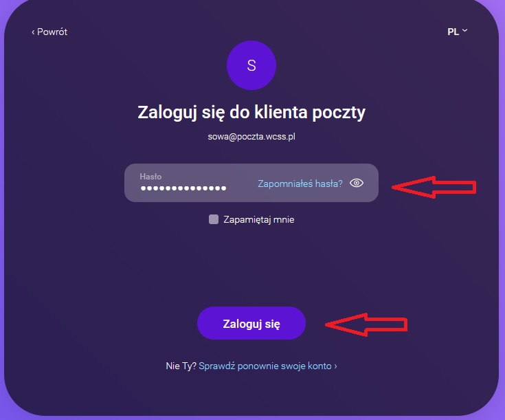- Za login konta przyjmuje się adres mailowy wraz z domeną (przykład: jan.koperta@pwr.mail.pl)
